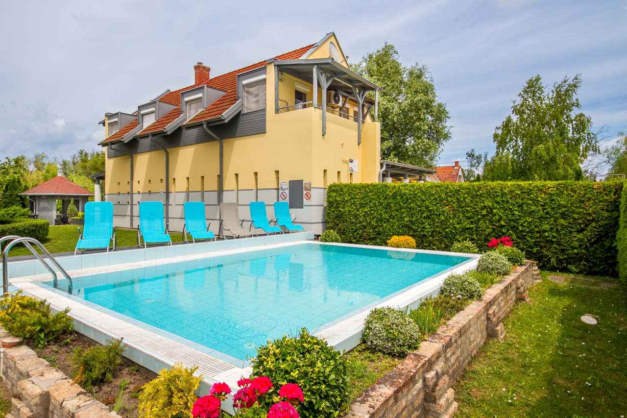 Szépen berendezett, klimatizált nyaraló 8-9 főre csendes, nyugodt helyen medencével, wifivel, mosogatógéppel.